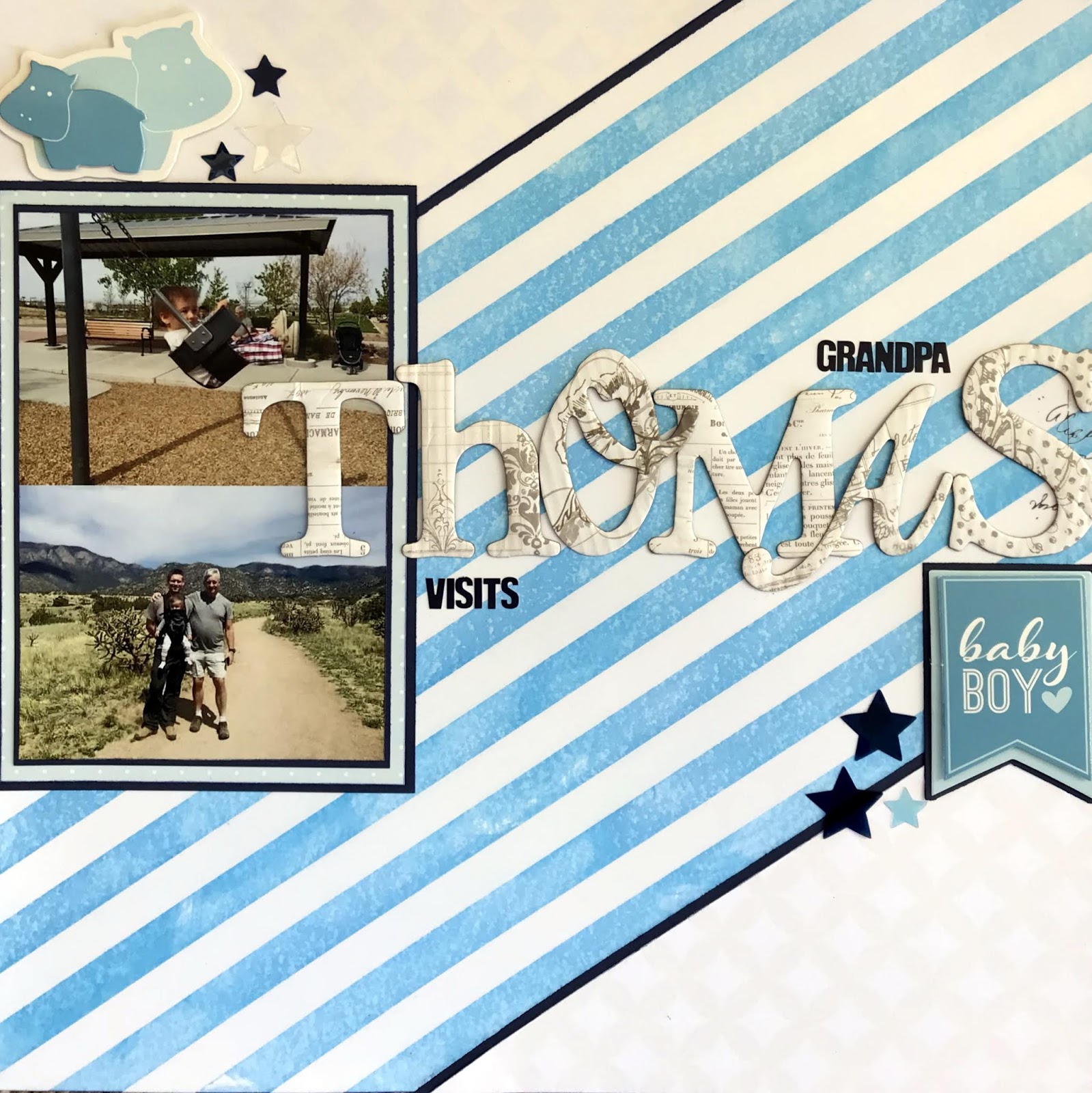 I have been crafting a lot this month, and I have some layouts to show you. The More Than Words challenge inspired me to create a layout featuring three generations of Thomas boys, and I used stars on my layout as well.